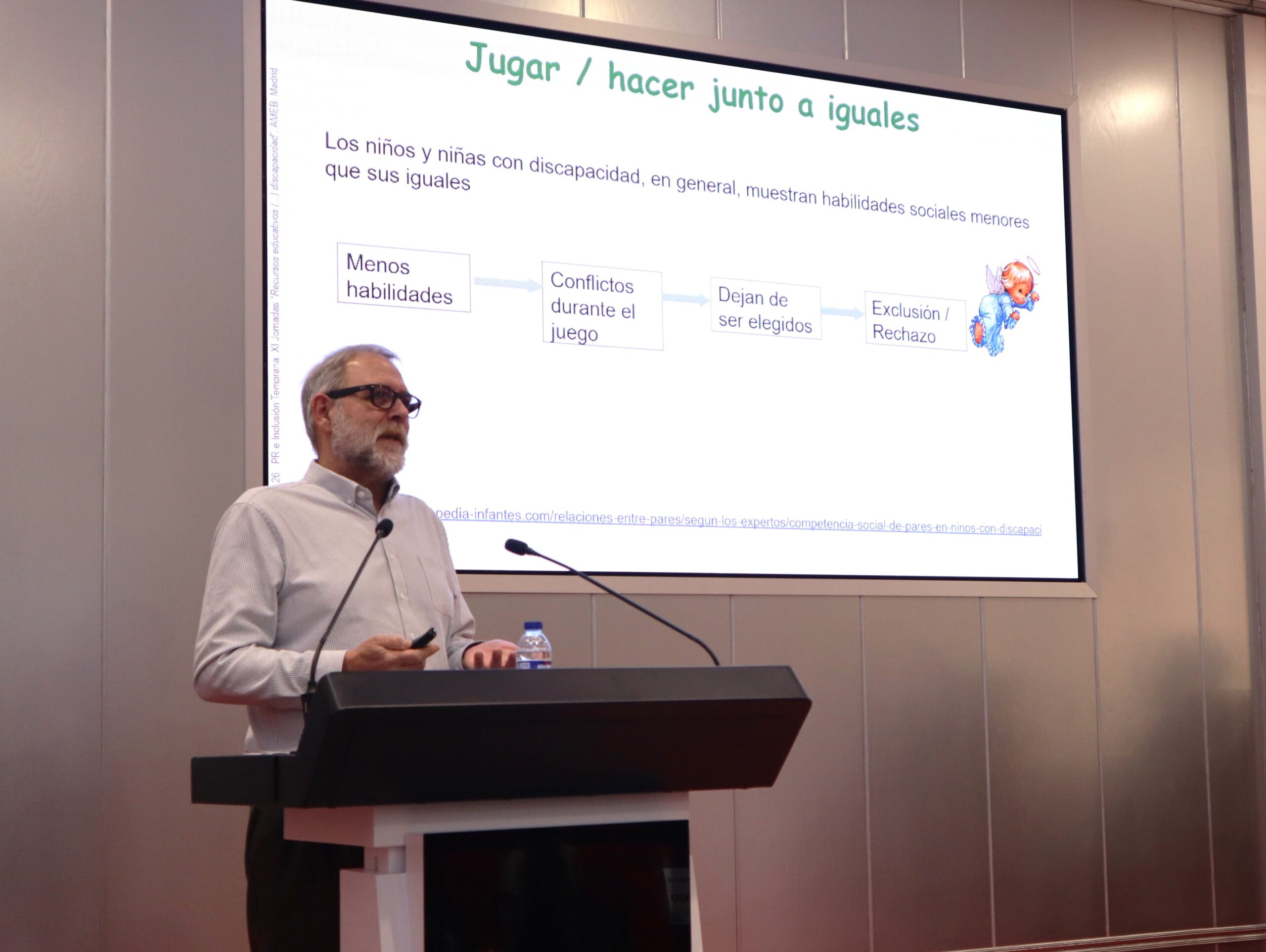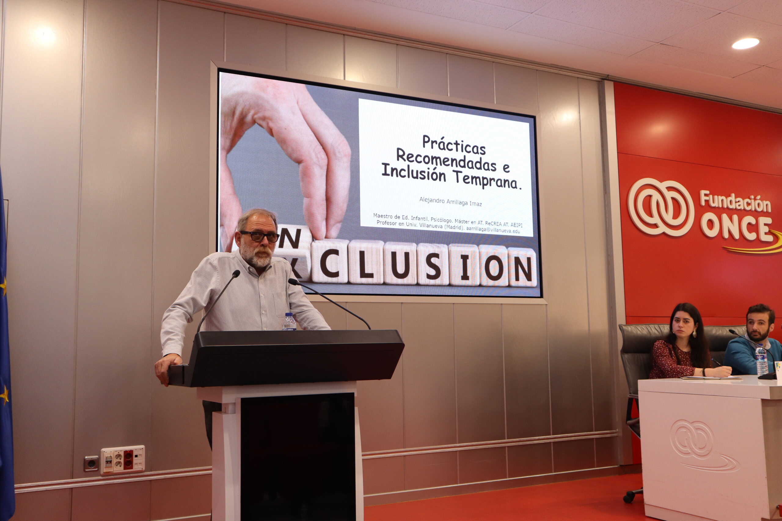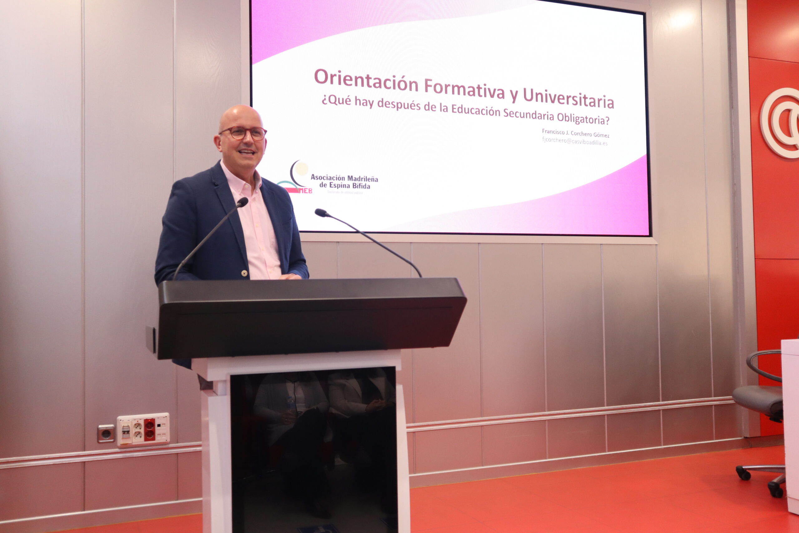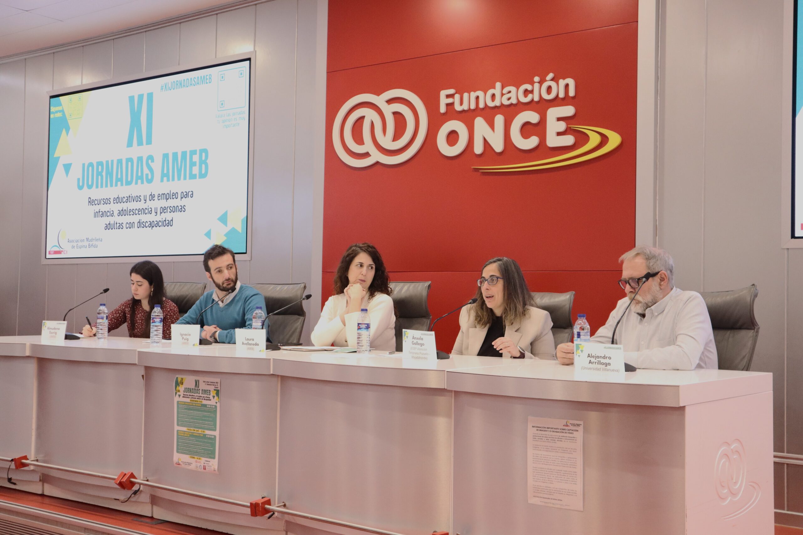 La mesa finalizó con Alejandro Arrillaga, psicólogo de la Universidad Villanueva, que compartió buenas prácticas en atención temprana, y con la presentación del proyecto de sensibilización “Acércate a la Espina Bífida” de AMEB, que visibiliza la realidad de esta condición en entornos educativos, a cargo de Laura Avellaneda, e Almudena Escrig, profesionales de AMEB e Ignacio Puig, socio y colaborador con el proyecto.