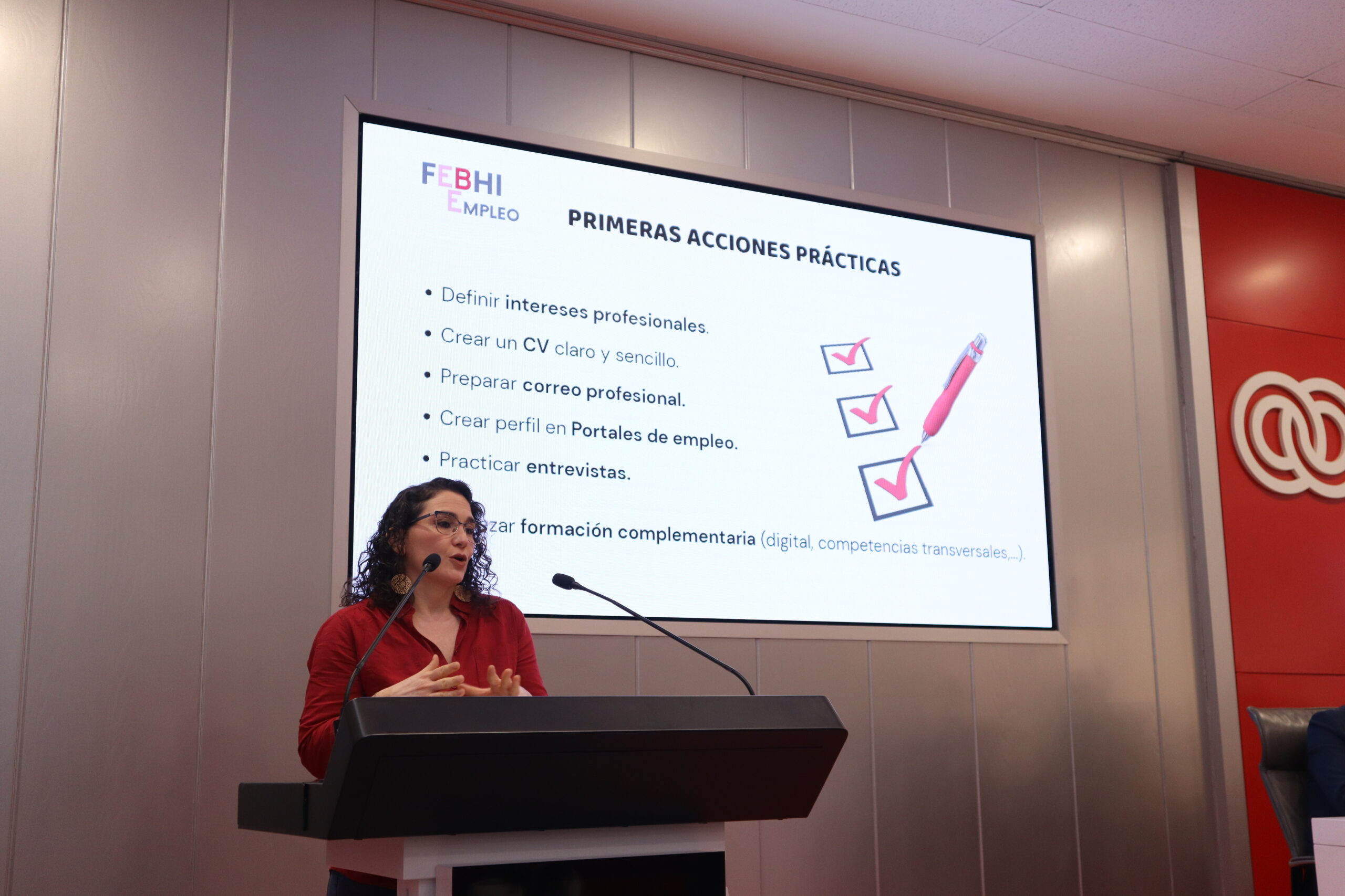 En el ámbito laboral, Magalí Vizcaya, coordinadora del Servicio de Empleo de FEBHI, explicó las oportunidades de empleo y la importancia de generar entornos accesibles, y Sergio Aguinaga, trabajador social y director en Fundación AMÁS, presentó el proyecto Más Sueños, Menos Límites, como responsable del mismo, reconocido a nivel nacional por su enfoque centrado en la persona.
