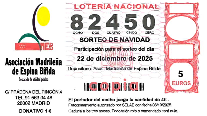 La Asociación Madrileña de Espina Bífida (AMEB) pone en marcha la venta de su Lotería de Navidad 2025, con el número 82450, con el que se participará en el sorteo de la…