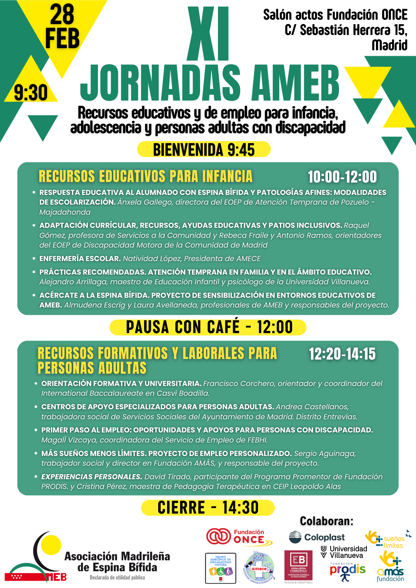 Desde la Asociación Madrileña de Espina Bífida (AMEB), nos complace invitarte a las XI Jornadas AMEB, un encuentro divulgativo, que en esta ocasión, tras el éxito de las X Jornadas organizadas en 2024, se centrarán en recursos educativos y de empleo para infancia, adolescencia y personas adultas con discapacidad.