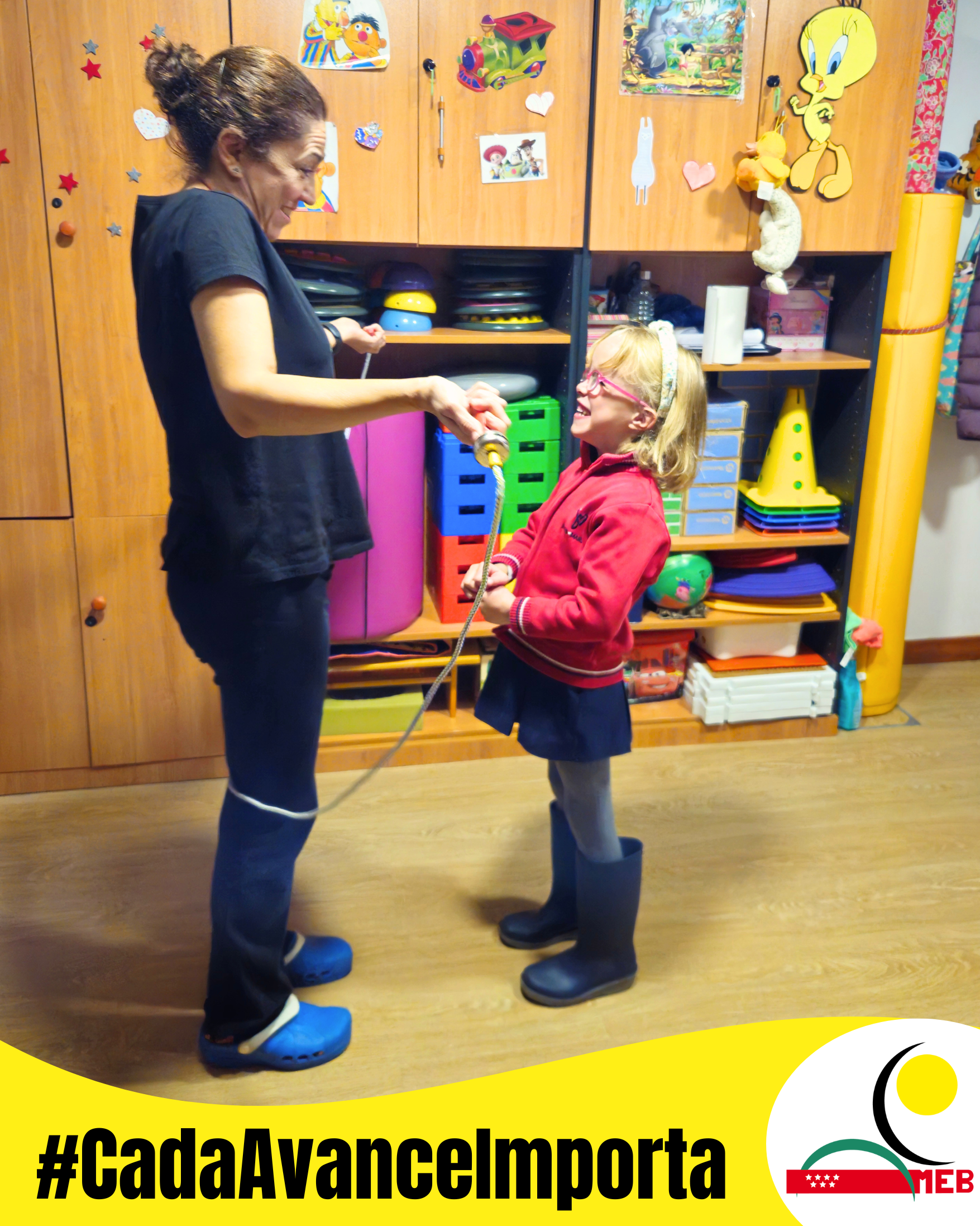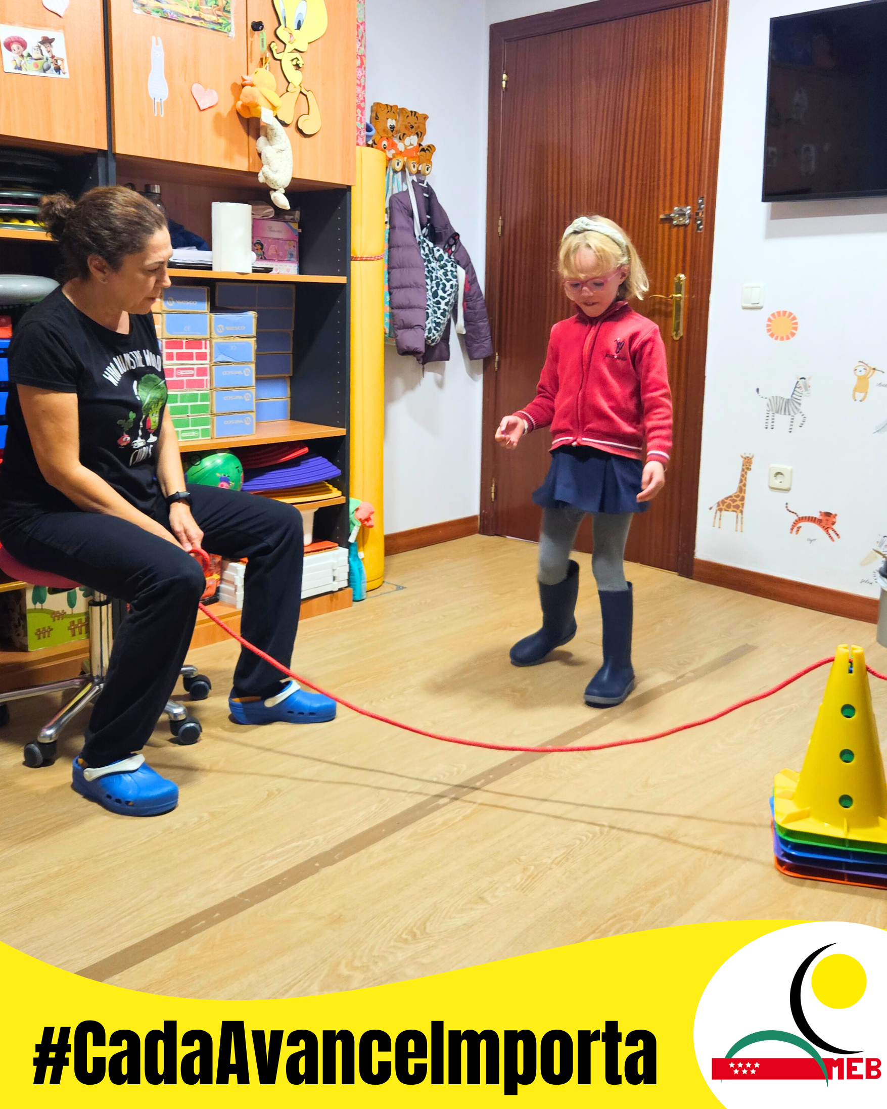 💫 Uno de sus mayores deseos era aprender a saltar a la comba para poder jugar con sus compañeras y compañeros de clase. Con esfuerzo, ilusión y el acompañamiento de Conchi, su fisioterapeuta, lo está logrando, abriendo la puerta a nuevas formas de relacionarse, divertirse y participar activamente en los juegos, compartiendo momentos con su grupo e incluyéndose plenamente.
