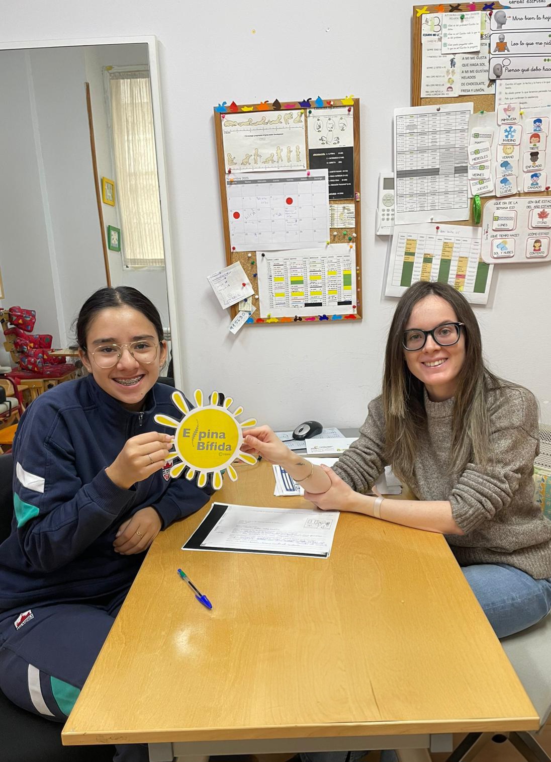 Nuestras sedes también se llenaron de soles amarillos para sumarnos a la campaña en redes con el hashtag #miSOLporlaEB. Durante la jornada, en el Centro de Atención Diurna, realizamos la lectura del manifiesto oficial y elaboramos diversos materiales de difusión para aumentar la visibilidad y la sensibilización sobre la espina bífida.